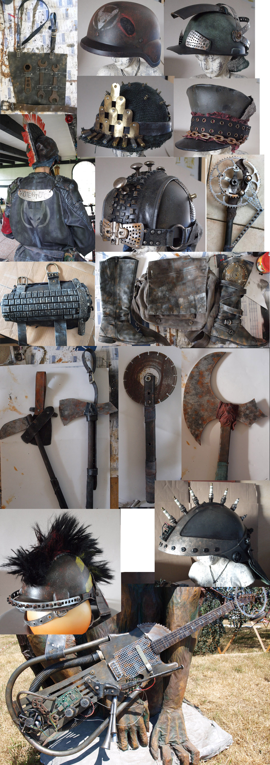 verschiedensten Materialien habe ich verarbeitet: Stoffe, Kunstleder, Leder, Kunststoffe, Holz, Metalle, Elektroteile.