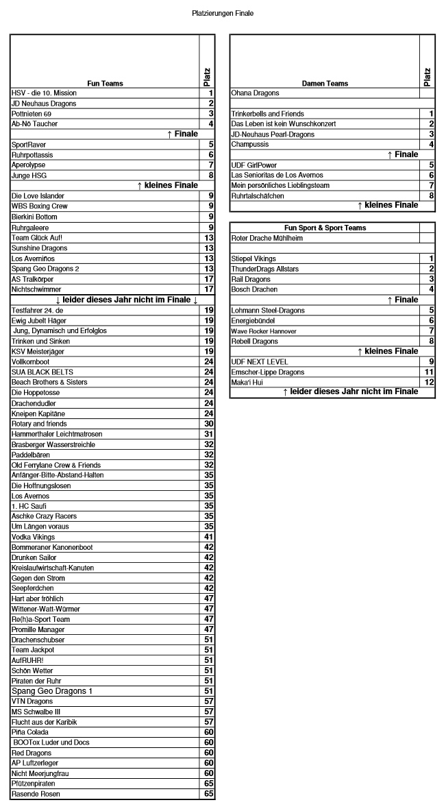 Platzierungen (Quelle: Kanu Club Witten)